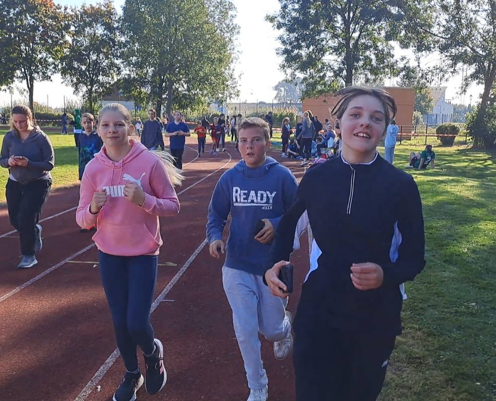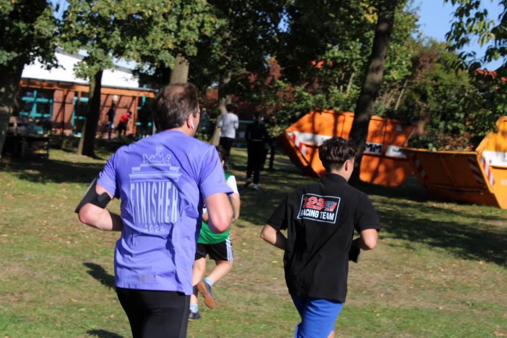 Von den Kindern der Grundschule über die Jugendlichen der Mittel- und Oberstufe bis hin zu den LehrerInnen – an diesem herrlichen Herbsttag waren alle unterwegs und feuerten sich gegenseitig an. „Ich fühle nur noch Schmerzen“, klagte lachend Valeska Rausch aus der 6. Klasse und lief mit ihren Klassenkameraden schon die nächste Runde. Je nach Altersgruppe liefen die SportlerInnen 30, 60 oder 90 Minuten. Die Spendengelder werden nun von den Sponsoren eingesammelt und kommen der Schule und zugute.