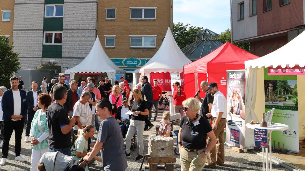 Anschließend lud die Geschäftsführerin der Kreishandwerkerschaft Susanne Bendfeldt die Anwesenden zu einem gemeinsamen Rundgang über den Marktplatz ein. Dabei führte sie die Gäste zu den verschiedenen Ständen und Handwerksvorführungen.