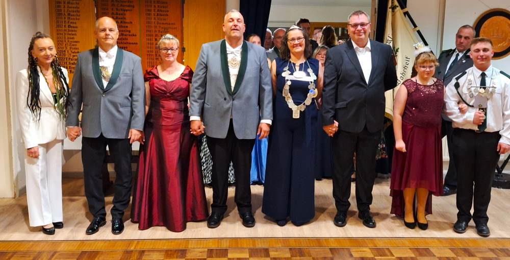 Nach einem deftigen Abendessen eröffnete das Königspaar mit dem traditionellen Eröffnungstanz die Tanzfläche. DJ Rainer Frahm sorgte anschließend für eine ausgelassene Stimmung, und die Gäste nutzten die Gelegenheit, bis spät in die Nacht das Tanzbein zu schwingen.