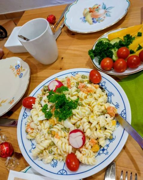 Wie schon beim Mittagsangebot steht auch beim Abendessen das Miteinander im Mittelpunkt: gemeinsam essen, sich austauschen, lachen und einfach eine schöne Zeit verbringen. Neben den Klassikern wie Würstchen oder belegten Broten soll es bei jedem Treffen ein kulinarisches Extra geben. Beim ersten Mal war dies der hausgemachte Nudelsalat. „Sagen Sie uns einfach, was Sie schon immer mal wieder essen wollten – wir schauen, ob wir das hinbekommen“, lädt Hilke Ramm die Gäste ein.