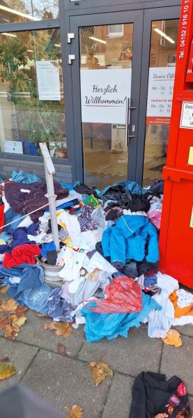 Geesthacht (pm). Am frühen Montag, 3. November 2025, wurde vor dem AWO-Kaufhaus in der Lauenburger Straße viel Müll entdeckt.