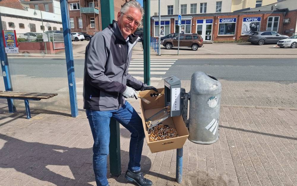 Insgesamt 20 Kippenboxen werden wöchentlich von Detlev Schmalfeld geleert und die gesammelten Kippen gewogen, um die Menge zu erfassen. Die Bürgerinnen und Bürger nehmen die Sammelboxen sehr gut an und tragen damit aktiv zu einem saubereren Stadtbild bei.