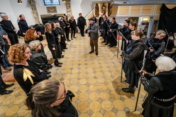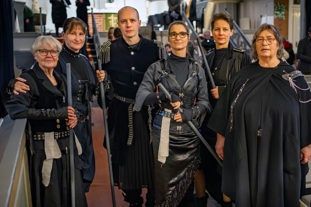 Ein ungewohnt bedrohliches Szenario für eine Kirche: Zwei schwarz gekleidete Gruppen stehen sich gegenüber – die eine mit angedeuteten Engelsflügeln geschmückt, die andere ausgestattet mit Stöcken und Uniformen, die an Endzeitfilme erinnern. Rund 50 Mitwirkende aus Chor, Orchester und Schauspiel verwandeln die Maria-Magdalenen-Kirche in Lauenburg in eine große Probebühne. Ein Jahr lang arbeiten und proben sie schon unter der Regie von Frank Düwel und der musikalischen Leitung von Kirchenmusikdirektorin Susanne Bornholdt an dem Stück.