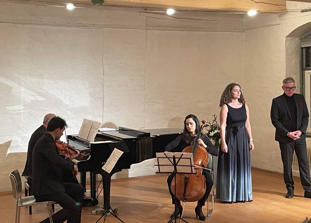 Anfang November begeisterten im Stadthauptmannshof fünf Talente mit einem außergewöhnlichen Programm, denn das Konzert vereinte zwei Stilrichtungen, die auf den ersten Blick scheinbar nichts gemeinsam haben: Klassik und Tango. Im ersten Teil des Konzertes widmeten sich die Musikerinnen und Musiker des Ensembles „Chant et jeu“ auf sehr abwechslungsreiche Art der als „ernste Musik“ bekannten Klassik der Spätromantik. Das Publikum lauschte der Moderation von Friedrich Szepansky, der als Pianist auch gemeinsam mit Vahram Sardarjan (Violine) und Noelia Balaguer-Sanchis (Violoncello) überzeugte und dem Gesang von Mezzosopran Ilme Stahnke. Nach der Pause offenbarten sich dem Publikum beim für Klavier, Cello und Violine bearbeiteten lateinamerikanischen Teil des Konzertes, die Berührungspunkte von Klassik und Milonga. Norman Röhl (Gesang) entführte die Anwesenden mit der Darbietung verschiedener Stücke spätromantischer Zeitgenossen in spanisch-leicht anmutende Musikgefilde. Gerade in dieser bearbeiteten Form wurden mittels spezieller Arrangements deutlich, dass die spätromantische Epoche nicht nur klassische Musik, sondern eben auch den Tango hervorgebracht hat.