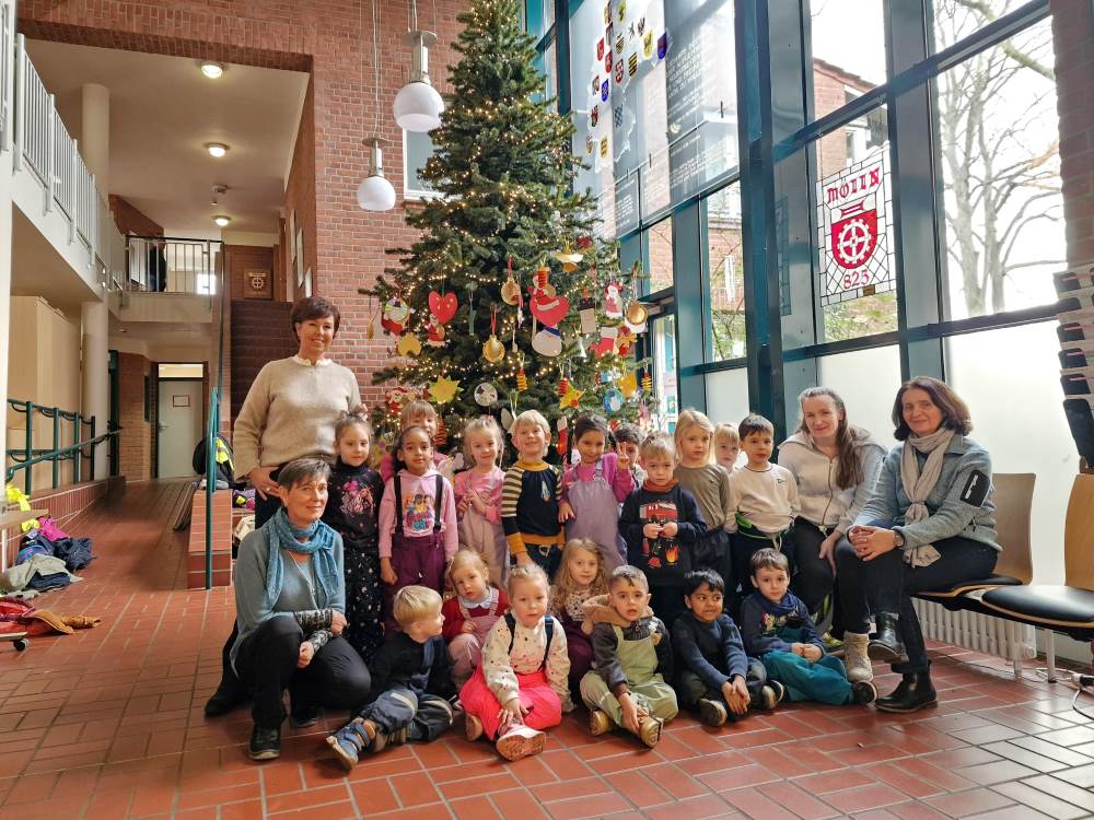 Mit diesem gemeinsamen Projekt möchten die Kita Großer Eschenhorst und die Stadt Mölln die Vorfreude auf Weihnachten bei den Bürgerinnen und Bürgern wecken. Der geschmückte Weihnachtsbaum lädt nun alle Möllnerinnen und Möllner ein, die festliche Atmosphäre im Stadthaus zu genießen. Zum Abschluss gab es für alle Kinder als kleines Dankeschön ein paar süße Leckereien.