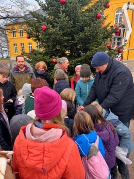 ‚Freie Schule Ratzeburg‘ schmückt Weihnachtsbaum vor dem Rathaus