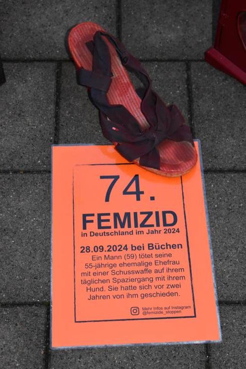 Besonderer Dank gilt allen Schuhspenderinnen, die es möglich machten, dass die Organisatorinnen mit den rot angesprühten Schuhen auf jede einzelne in Deutschland durch ehemalige Partner getötete Frau seit dem Mord an Claudia K. aufmerksam machen konnten – 112 Schicksale, die alle sehr bewegen und sich nicht wiederholen dürfen.