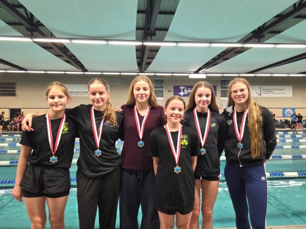 In den Weihnachtsferien war dieses auch für die Jüngsten im Jahrgang (Jg.) 2015 und 2014 kein Problem. Alle waren gesund. Die Aktiven erreichten bei 140 Starts 80 persönliche Bestzeiten (PB) und 63 Podestplätze sowie auch Ehrungen für den Sprintmehrkampf bzw. Mittelstreckenmehrkampf. Die relativ junge Staffel über 6 x 50 m mixed, bestehend aus Matteo Baasch, Jg. 2014, Lilli Sophie Lorenz, Jg. 2013, Marla Krüger, Jg. 2011, Jonas Thiem und Katharina Hack, Jg. 2013 sowie Schlussschwimmerin Lilly Wilhelmsen, Jg. 2011, machten ihre Sache prima und erreichten gegen deutlich ältere Mannschaften überraschend sogar den Bronzeplatz.