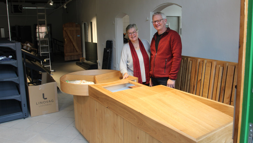 „Daher musste am Ende alles entkernt werden, Wandverkleidungen ab. Wir haben alles von hiesigen Firmen sanieren lassen“, so Brüggemann weiter. Neben der Beseitigung der Brandschäden wurden auch technische Anlagen überprüft und Kühlgeräte erneuert. „Die modernen Geräte sind leiser und sparsamer“, sagt Christian Brüggemann. Der Lämmerhof nutzte die Zeit der Schließung zudem für organisatorische und bauliche Anpassungen. „Zum Teil haben wir dem Laden eine etwas neue Einteilung verpasst. Außerdem wird alles ein bißchen schicker und ansprechender. Aber natürlich werden wir den Charakter des Ladens, wie ihn alle kennen, erhalten. So baut uns ein Tischler einen neuen Tresen für den Brotbereich“, beschreibt Urte Brüggemann einige der Neuerungen. Auch der Kassentisch am Ausgang wird ein echter Hingucker.