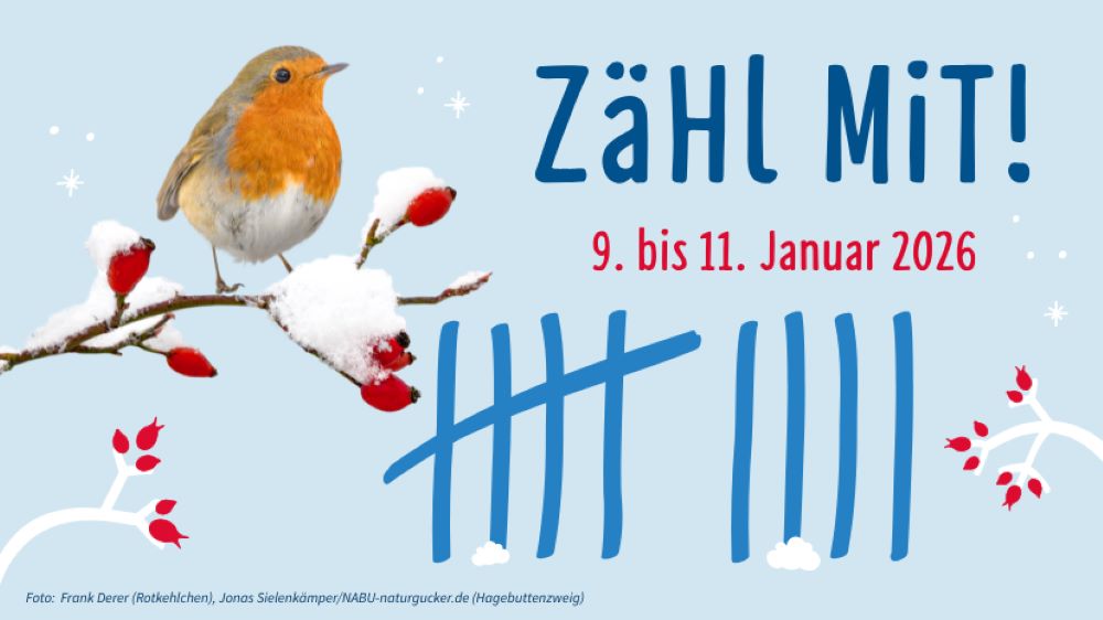 Wer bei der NABU-Aktion mitmachen möchte, beobachtet eine Stunde lang die Vögel am Futterhäuschen, im Garten, auf dem Balkon oder im Park und meldet die Ergebnisse dem NABU. Dabei wird von einem ruhigen Beobachtungsplatz aus von jeder Art die höchste Anzahl an Vögeln notiert, die im Laufe einer Stunde gleichzeitig zu sehen ist. Die Beobachtungen können unter www.stundederwintervoegel.de und mit der App „NABU Vogelwelt“ bis zum 19. Januar online gemeldet werden.