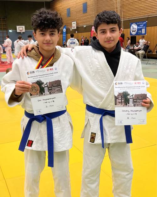 Gor und Gevorg, beide als Landesvizemeister in ihren Gewichtsklassen nach Braunschweig gereist, hatten im Vorfeld mit fiebrigen Erkältungen zu kämpfen, schafften den Sprung unter die besten Fünf aber trotzdem. Während Gevorg (-50kg) nach einem erfolgreichen Würgegriff seines Gegners aufgeben musste, sich aber dennoch Platz fünf sicherte, zeigte sein etwas leichterer Bruder bis 46 Kilogramm nach einem schnellen Sieg in der Hoffnungsrunde im entscheiden Kampf um Bronze trotz der gerade überstandenen Krankheit gute Kondition: Das ausgeglichene Duell gegen seinen ärgsten Konkurrenten aus dem eigenen Landesverband ging in die Verlängerung – im Golden Score konnte Gor dann aber durch eine Wurfwertung erfolgreich Revanche für das verlorene Landesfinale nehmen. Am 28. Februar starten beide TJK-Kämpfer in ihrem ersten U18-Jahr in Leipzig nun gleich auf nationaler Ebene.