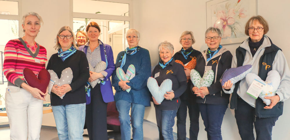 Ratzeburg (pm). Die LandFrauen Berkenthin haben das AMEOS Reha Klinikum Ratzeburg besucht und erneut liebevoll genähte Herzkissen für Frauen nach einer Brustkrebsoperation überreicht. Die Kissen erhalten die Rehabilitandinnen während ihrer onkologischen Rehabilitation in Ratzeburg.
