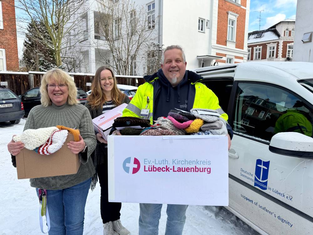 Gestrickte Wollmützen für die Seemannsmission Lübeck können beim Kirchenkreis abgegeben oder per Post geschickt werden an: Kirchenkreis Lübeck-Lauenburg, Bäckerstraße 3–5 in 23564 Lübeck.