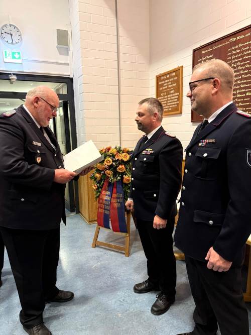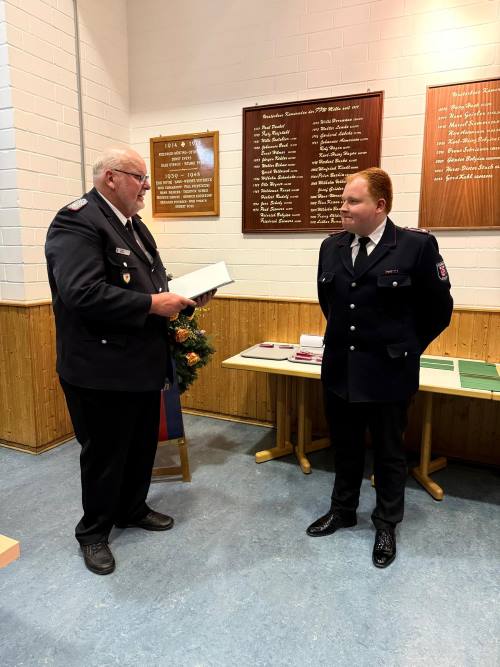 Sven Stonies informierte die Anwesenden zudem über die getätigten Umbaumaßnahmen am und im Gerätehaus und berichtete, dass 2025 ein neues Hilfeleistungslöschfahrzeug (HLF 20) in Dienst gestellt wurde. Außerdem blickte er noch einmal auf das 90-jährige Jubiläum des Spielmannszuges zurück.