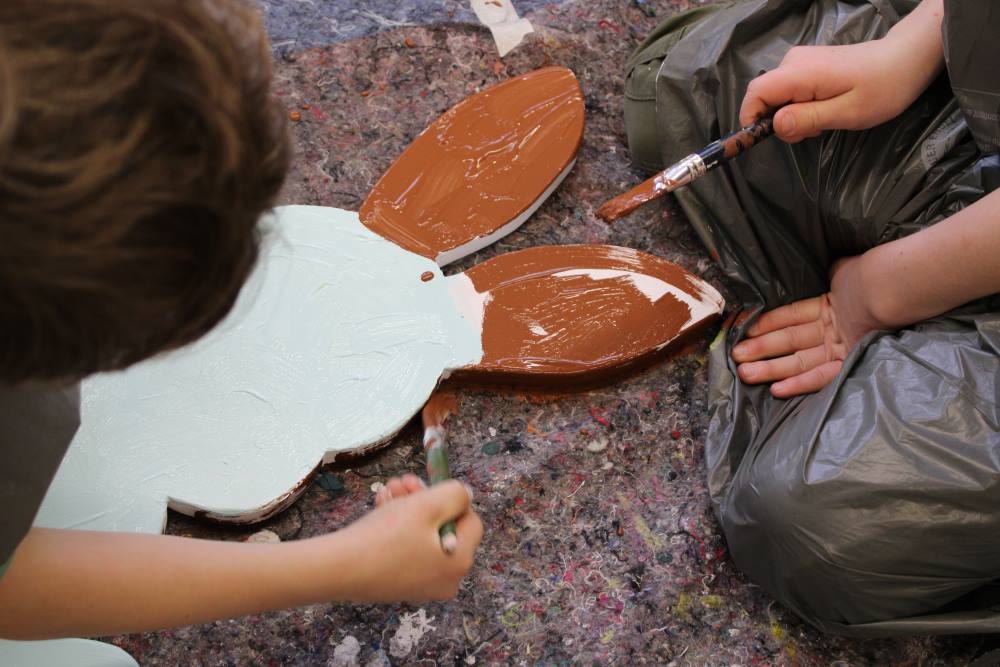 Sandesneben (sn). Fleißige Helfer aus der Offenen Ganztagsschule (OGS) der Grund- und Gemeinschaftsschule Sandesneben unterstützten in diesem Jahr die Gemeinde bei den Ostervorbereitungen. Von vielen kleinen Händen wurden in der Nachmittagsbetreuung riesige Eier und Hasen aus Holz bemalt.
