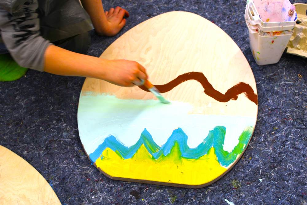 Sandesneben (sn). Fleißige Helfer aus der Offenen Ganztagsschule (OGS) der Grund- und Gemeinschaftsschule Sandesneben unterstützten in diesem Jahr die Gemeinde bei den Ostervorbereitungen. Von vielen kleinen Händen wurden in der Nachmittagsbetreuung riesige Eier und Hasen aus Holz bemalt.