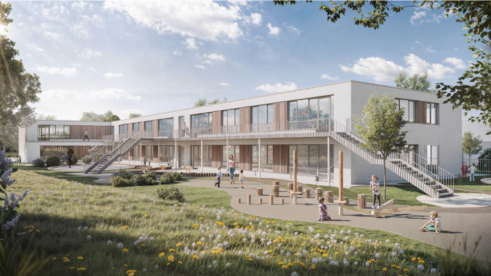 Im Mittelpunkt der Planung steht zudem das Thema Inklusion. Alle Bereiche des Gebäudes sind barrierefrei zugänglich und so gestaltet, dass Kinder mit unterschiedlichen Bedürfnissen selbstverständlich und gleichberechtigt am Alltag teilnehmen können. Hier soll ein Miteinander entstehen, das Vielfalt als Stärke begreift.