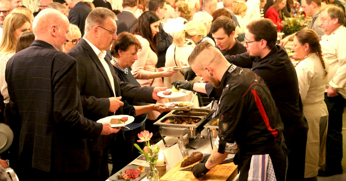 Ein besonderer Fokus liegt auch auf dem gastronomischen Nachwuchs: Auszubildende des BBZ Mölln bereichern die Veranstaltung mit Desserts und Service. Die Cocktails zum Empfang wurden ebenfalls von einem BBZ-Team zubereitet. Aber auch darüber hinaus ist Nachwuchs- und Fachkräftegewinnung weiterhin ein großes Thema in dem immer enger werdenden Netzwerk zwischen DEHOGA, IHK zu Lübeck, BBZ Mölln und der Herzogtum Lauenburg Marketing und Service GmbH (HLMS). In diesem Zusammenhang wurde Publikum im Rahmen der Auftaktverstaltung nochmals die gemeinsame Fachkräfteinitiative „Herzogs Gastgeber“ vorgestellt. Seit Januar 2022 arbeiten touristische Betriebe, Schulen und Institutionen unter der Federführung der Herzogtum Lauenburg Marketing und Service GmbH (HLMS) zusammen, um für die Ausbildung in der Branche zu werben und Betriebe tatkräftig zu unterstützen. Dazu Günter Schmidt: „Wir können sowas wie den Lauenburg’schen Teller zukünftig nur machen, wenn es dann auch entsprechende Fachkräfte gibt, die kochen möchten.“