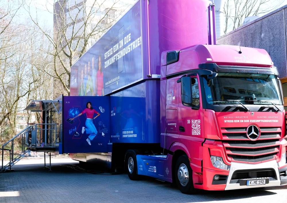 Zukunft gestalten! Die Aussteller aus Bildung, Kultur und Wirtschaft boten nicht nur Beteiligungsangebote für die Besucher/-innen an, sondern ermöglichten gleichzeitig einen Erstkontakt bezüglich ihrer Ausbildungs- und Studiengänge. Wie das technisch auf dem neusten Stand gelingen kann, zeigte Nursima Bozkurt (UKSH Akademie) einer Besucherin anhand einer VR-Brille. Beeindruckt, aber auch noch etwas vorsichtig wurden erste Bewegungen ausprobiert. Bozkurt erklärte: „Wir haben eine App entwickelt, mit der wir über die VR-Brille Einblicke in unsere Ausbildungsberufe geben. So wird zum Beispiel der Beruf der Anästhesietechnischen oder der Operationstechnischen Assistenz greifbar.“ Ein weiteres Highlight waren der Info-Truck der Metall- und Elektroindustrie (Nordmetall und AGV Nord), in dem moderne Produktionsmaschinen kennengelernt und teilweise auch ausprobiert werden durften und die Feuerwehr Bad Oldesloe, die samt Einsatzfahrzeug zum Staunen und Entdecken einlud. Die Segel setzen für ein Studium konnte man hingegen beim Stand des Schiffbau Campus Deutschland. Hier informierten Studierende inmitten zahlreicher Ausstellungsstücke über ihre Erfahrungen.
