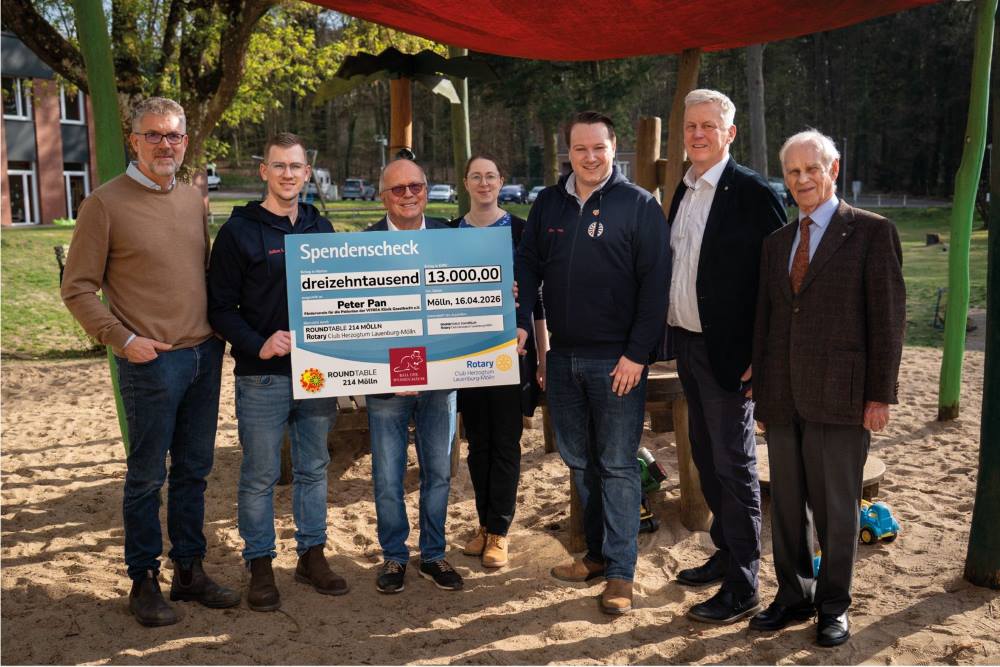 Glückliche Gesichter bei der Spendenübergabe von Mitgliedern des Fördervereins Peter Pan, Round Table 214 Mölln und Rotary Club Herzogtum Lauenburg-Mölln. Foto: Round Table 124 Mölln, hfr